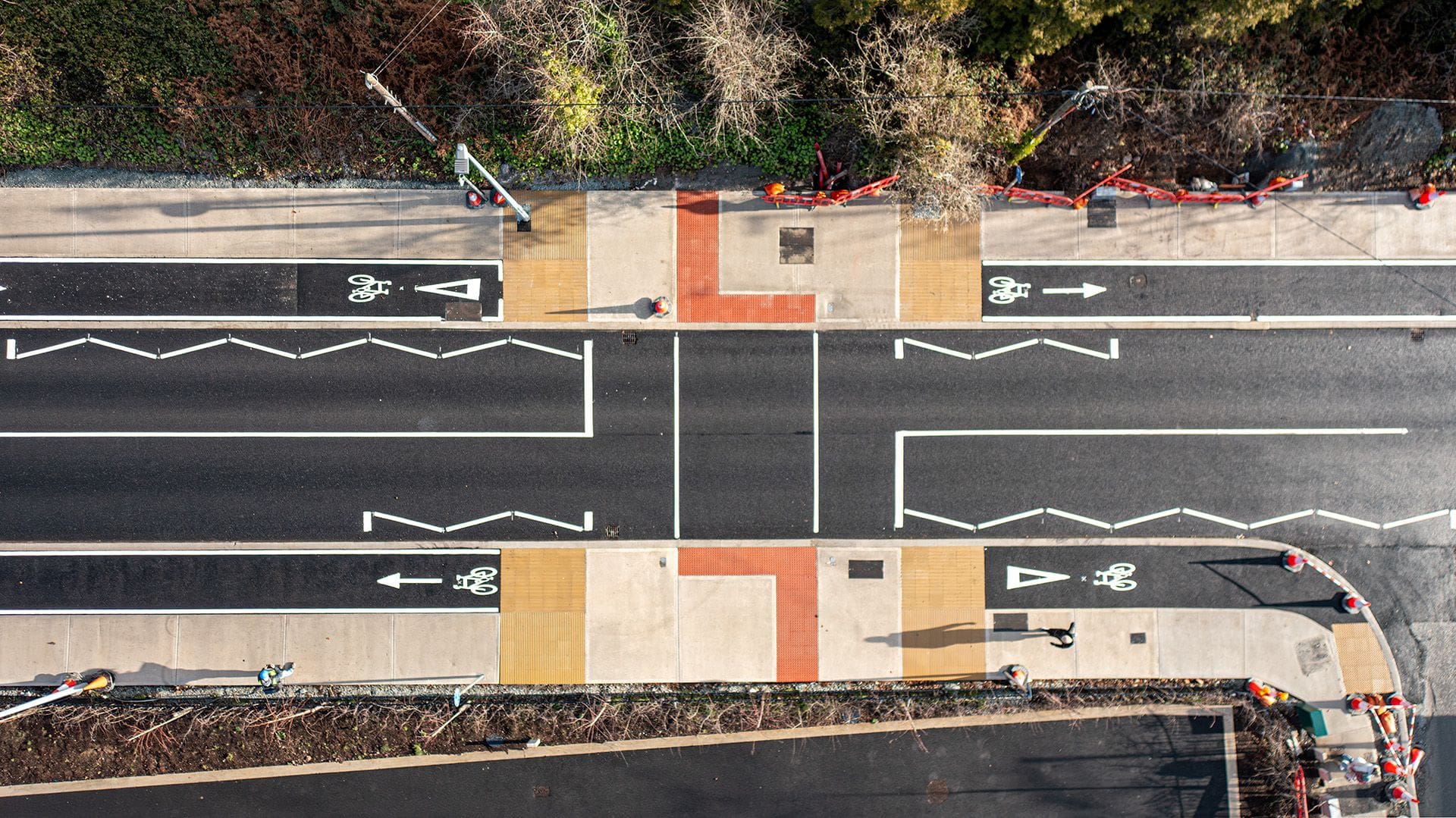 Section 1 extends from the Convent Road Roundabout to Eastmount and restores a key connection for residents, schools and local businesses, while delivering meaningful improvements in road safety, accessibility, cycle & pedestrian facilities and overall journey quality. The completed works include over 1,000 square metres of new concrete footpath to enhance pedestrian movement, alongside more than 3 kilometres of newly installed service ducting to support future infrastructure requirements.