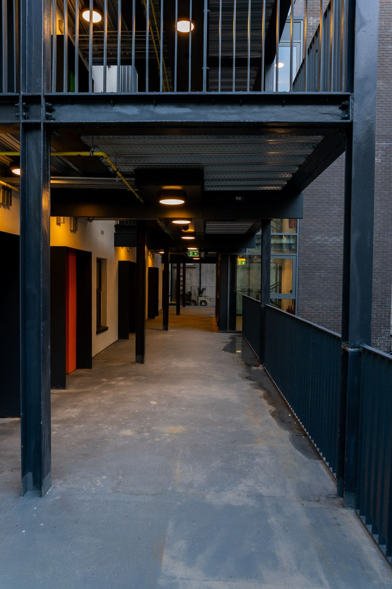 Once in a severe state of disrepair, the building has now been structurally upgraded to meet current building regulations and will provide 20No. one-bedroom residential units, with lift access to all floors. Original concrete filler joist flooring and timber roof trusses were sympathetically repaired and strengthened where required. The erection of a series of steelwork picture frames supporting the existing loadbearing rear façade along with the construction of a single storey extension, facilitated the open plan living space of the ground floor units and rear access circulation areas.