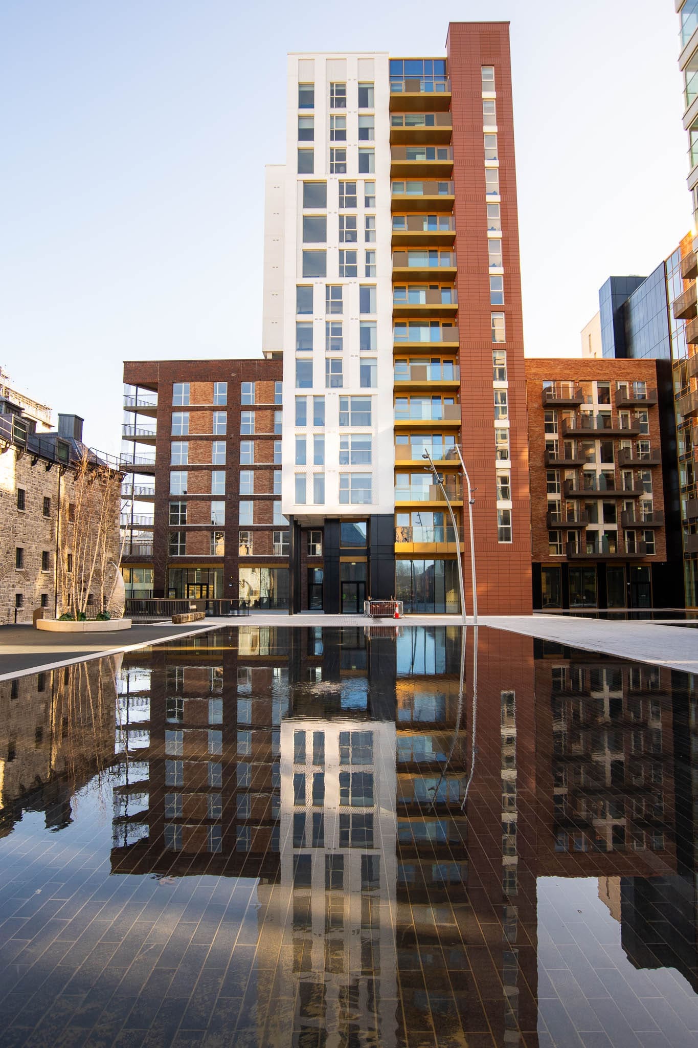 The unique character of this historic former dockyard has been maintained with the restoration and refurbishment of the Harbour Warehouse protected structure which will host a medical centre, café, retail units and co-working spaces. A generous public plaza with a central water feature provides a large flexible outdoor space with the potential for use for future outdoor events.