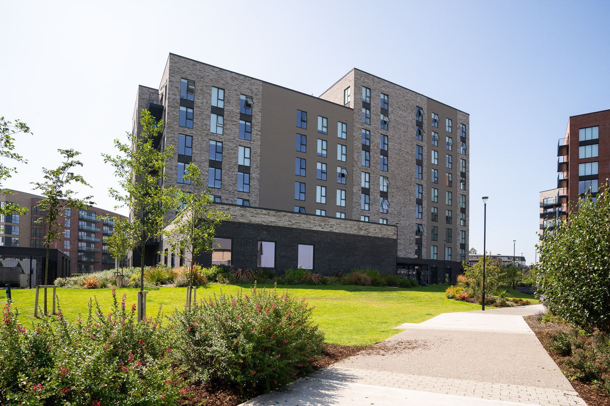 Phase One delivered 294 apartments across 7 blocks (4–6 storeys) including resident amenities such as a gym, crèche, and underground car park with 130 car spaces and dedicated bicycle parking. Phase Two comprised 404 units, with 6 blocks of apartments up to 9 storeys in height, retail and office spaces over basement parking, as well as 36 duplex units across 3 blocks.