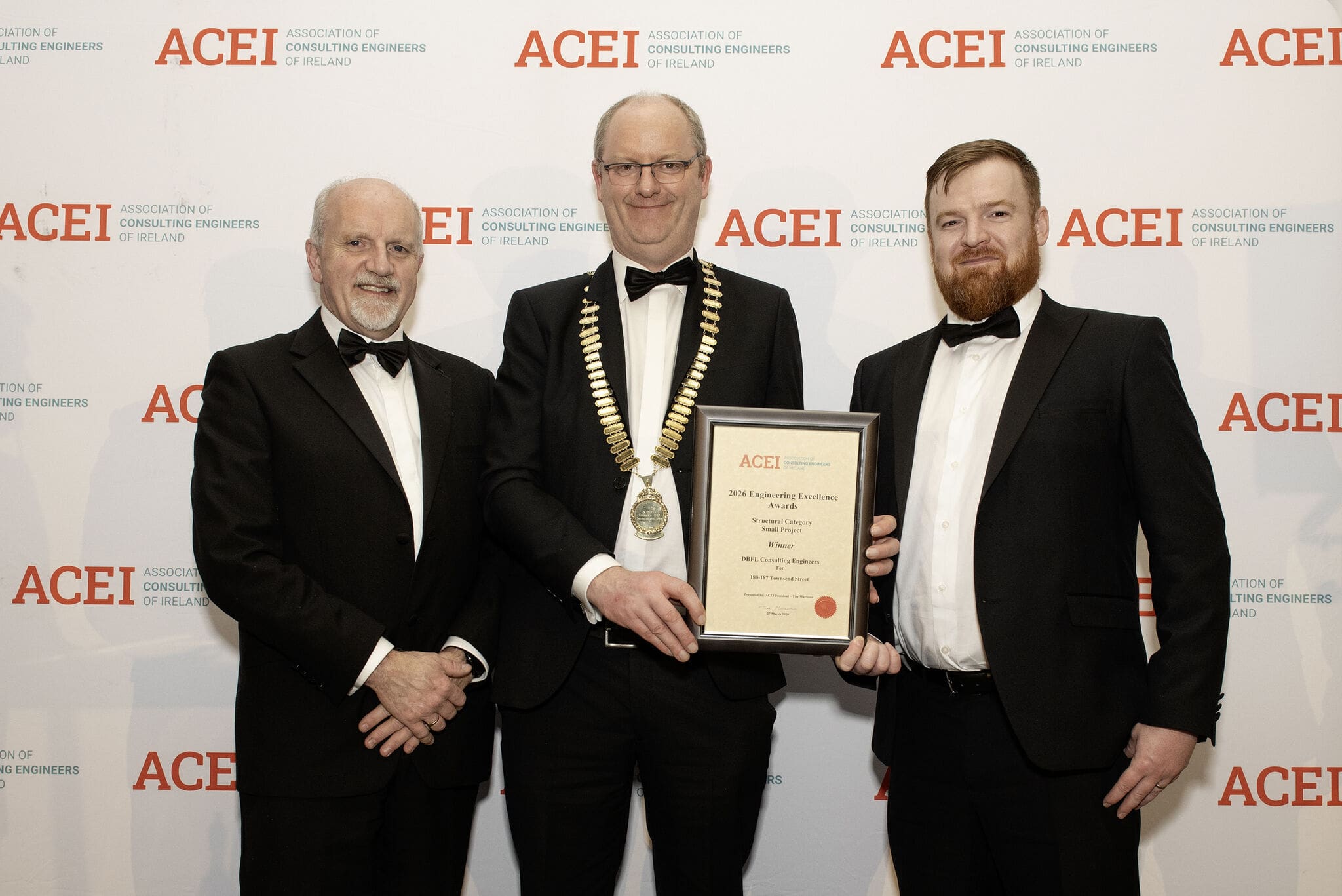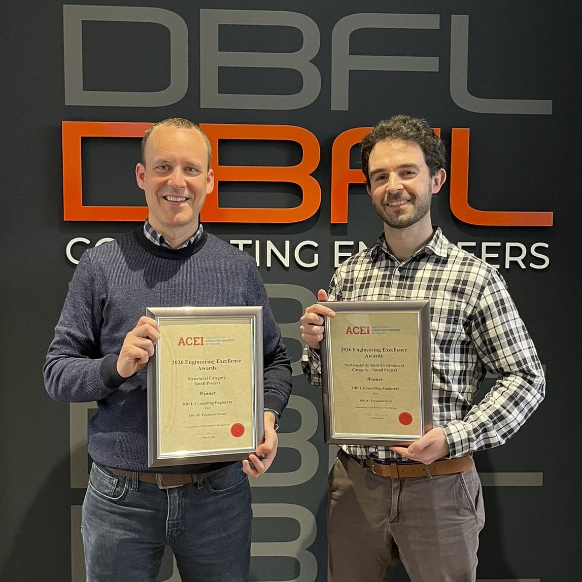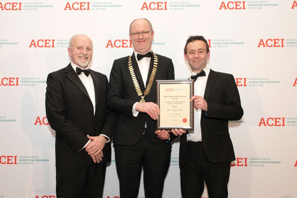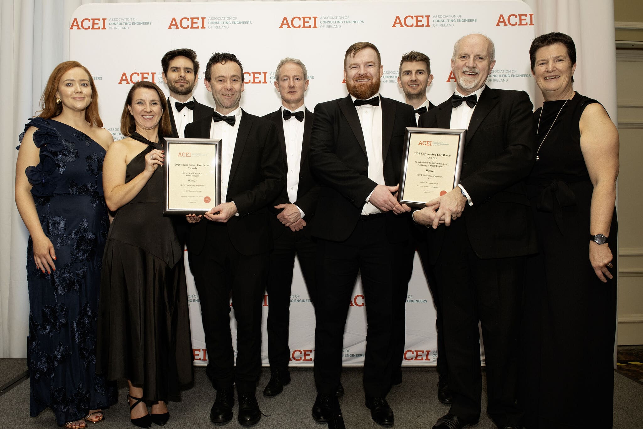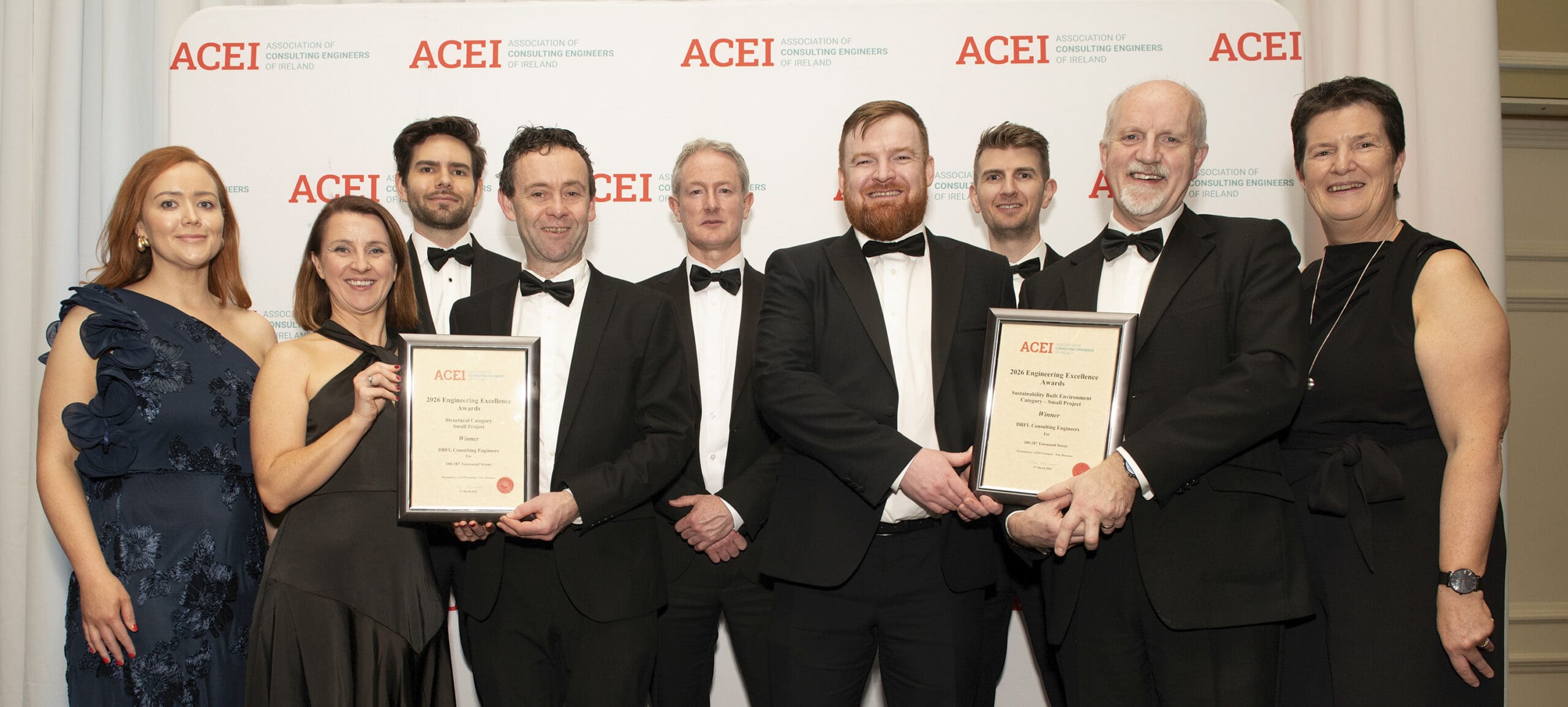 Awards on the double for DBFL last Friday night with the Renewal of 180-187 Townsend Street winning both the Sustainability Built Environment Award and the Structural Award for small projects at the 2026 ACEI Engineering Excellence Awards. Many thanks to Association of Consulting Engineers of Ireland (ACEI) for hosting such a wonderful night of celebration for our industry and thanks to ACEI president Tim Murnane for a great speech to inspire the attendees.