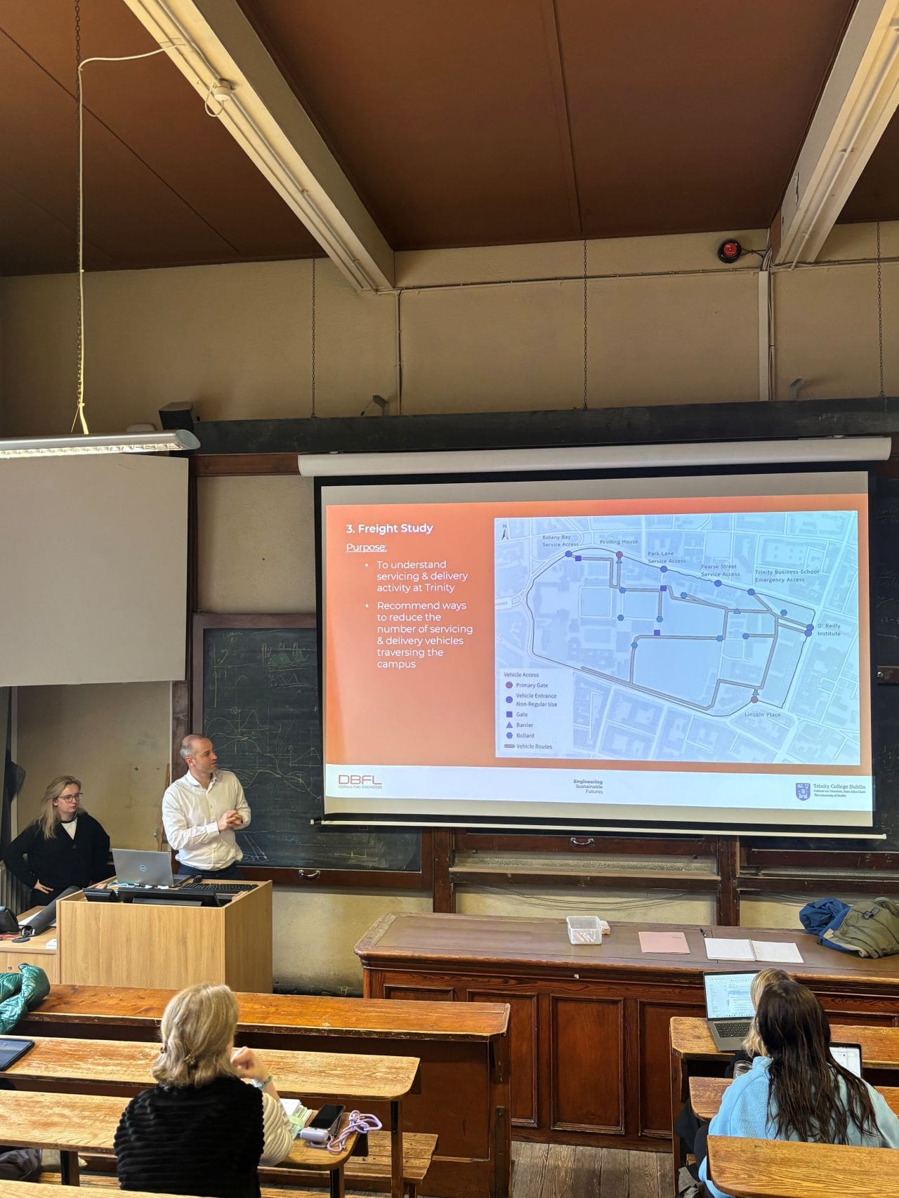 Our Transport Team were delighted to visit Trinity College Dublin this week to speak with fourth-year Civil, Structural and Environmental Engineering/Science students about the recently completed TCD Transport Study.
